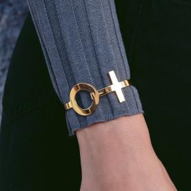– Vi har tagit fram en stiliserad kvinnosymbol till det här armbandet, lite lik Roks logotyp faktiskt. Givetvis har vi ekonomiska förhoppningar för armbandet, alltså att den drar in pengar till Aurorafonden. Vi tror på att stötta varandra, kvinnor emellan, men vi har också en förhoppning om att designen som är sparsmakad och subtil ändå ska ingjuta power och styrka hos bäraren. Kvinnlig styrka!