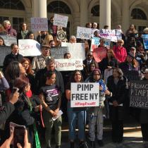 #PimpFreeNY var parollen för demonstrationen, som tog plats vid New Yorks stadshus, City Hall.