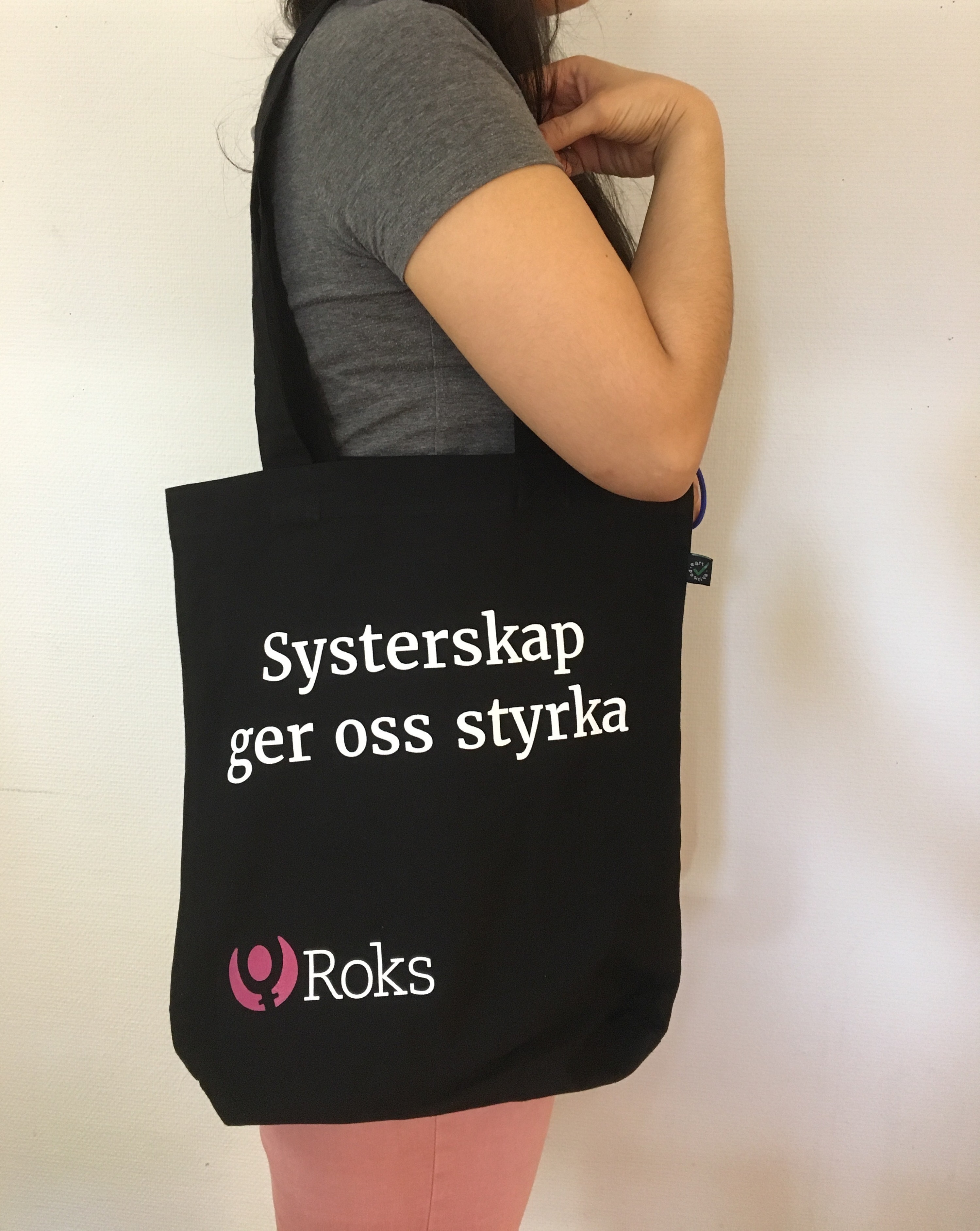 På kassen finns Roks logga och budskapet Systerkap ger oss styrka.
