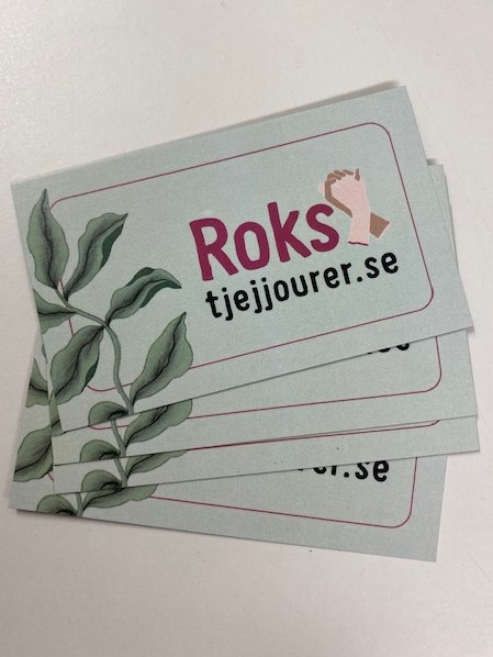 Visitkort med hänvisning till Roks tjejjourers hemsida.